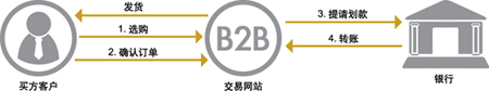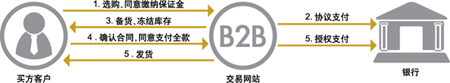 ○买方企业在B2B交易网站选购,达成付款意向;