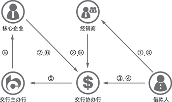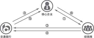 ①核心企业与经销商签订销售合同;