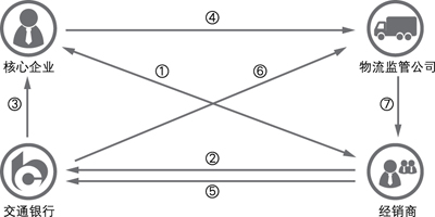 交通银行围绕相关行业中的核心企业,通过与国内大型物流公司开展质押监管合作、与保险公司开展信用保险合作等方式,为其上游的供应商、下游的经销商和终端用户提供的便捷灵活的供应链融资方案。
